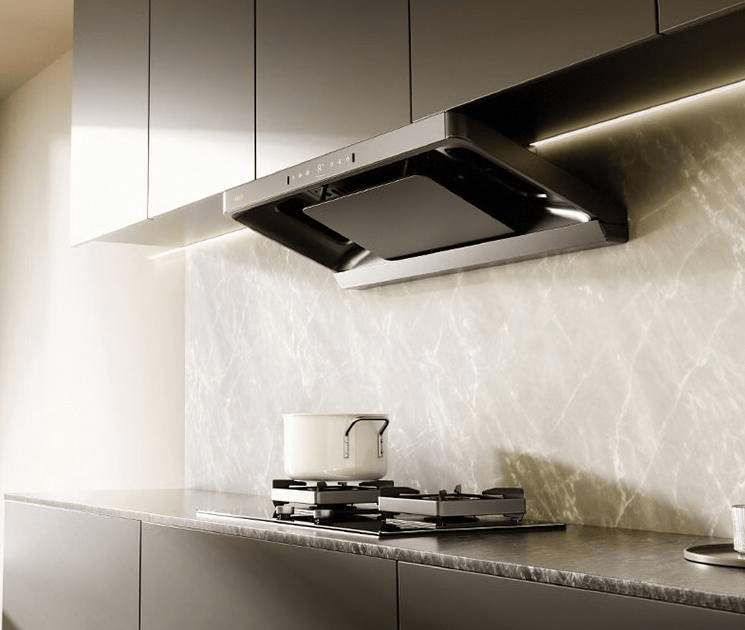 在细节方面也做得挺到位。星辰灰AG玻璃面板颜值很高,而且耐脏易清洁。它还采用了超薄平嵌设计,能与橱柜完美融合,让厨房看起来更整洁。此外,三重进阶净烟技术,逐步提升了控烟效果,感觉像给厨房空气做了个“SPA”。
