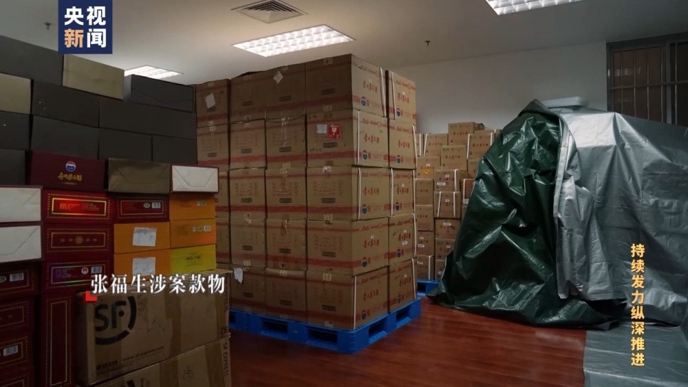 对张福生采纳留置办法后,专案组从他家中抄获了很多茅台酒,还有多件黄金制品。