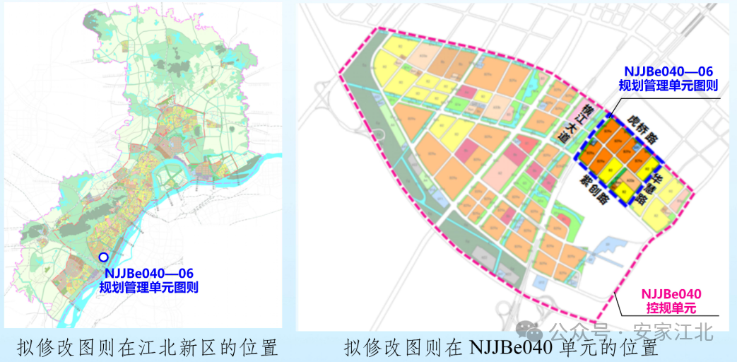 NJJBe040-06 规划管理单元图则位于浦口区江浦街道,东至华慧路、西至横江大道、南至紫创路、北至虎桥路,用地面积约57.12公顷。
